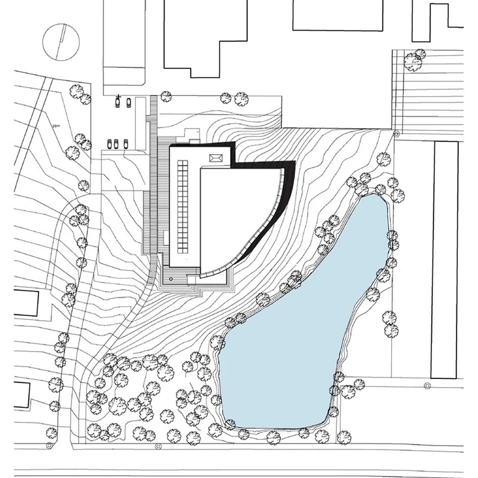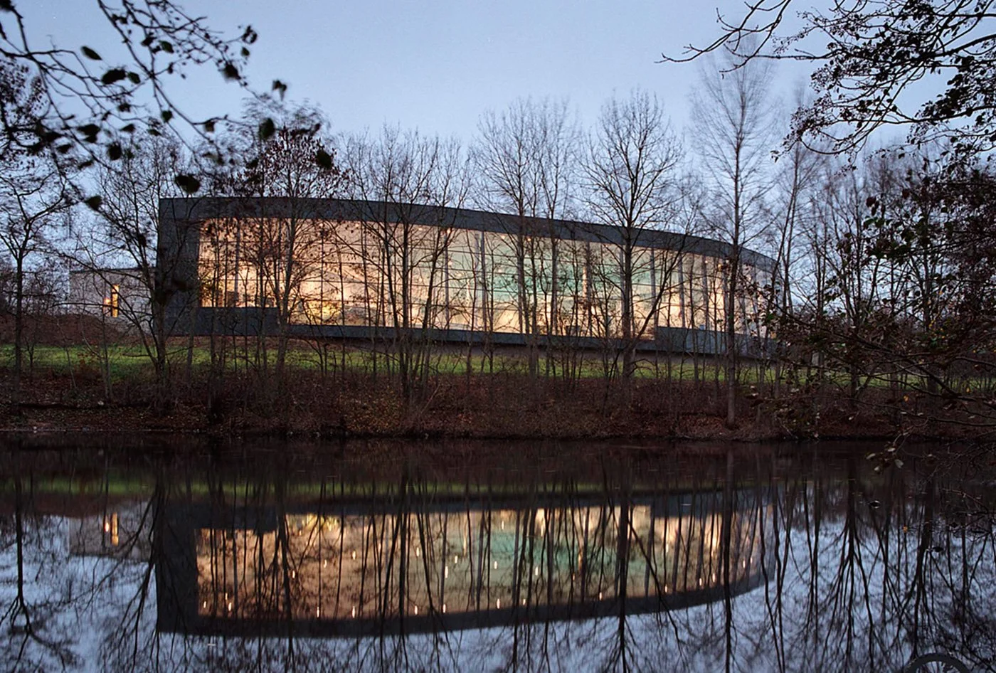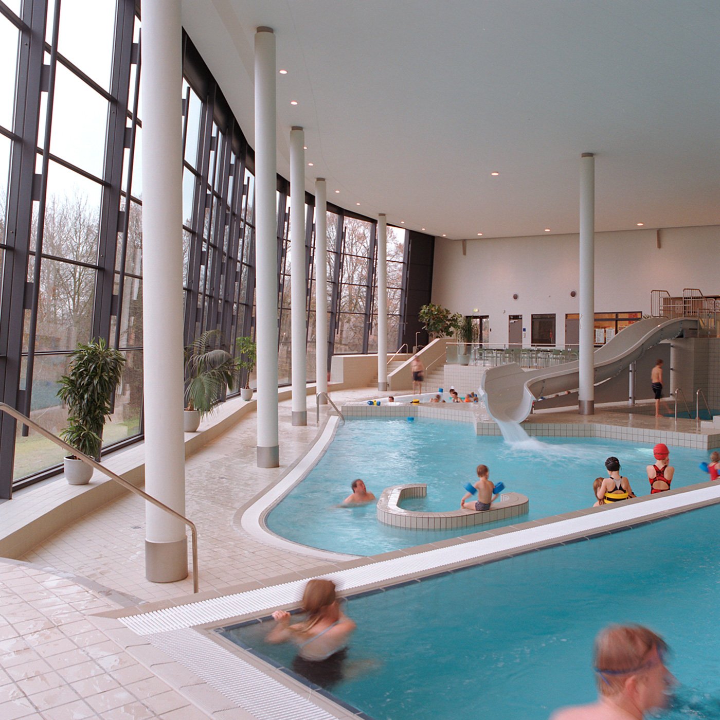 Svømmehallens bygningsmæssige relation til især Værebroskolen afspejles i en kubisk form med tyngde i materialevalget. I kontrast hertil er bygningens svømme- og badefaciliteter let og mere frit udformet med en maksimal åbning mod de to landskabelige hovedtræk: skråningen med beplantning og den lille sø.