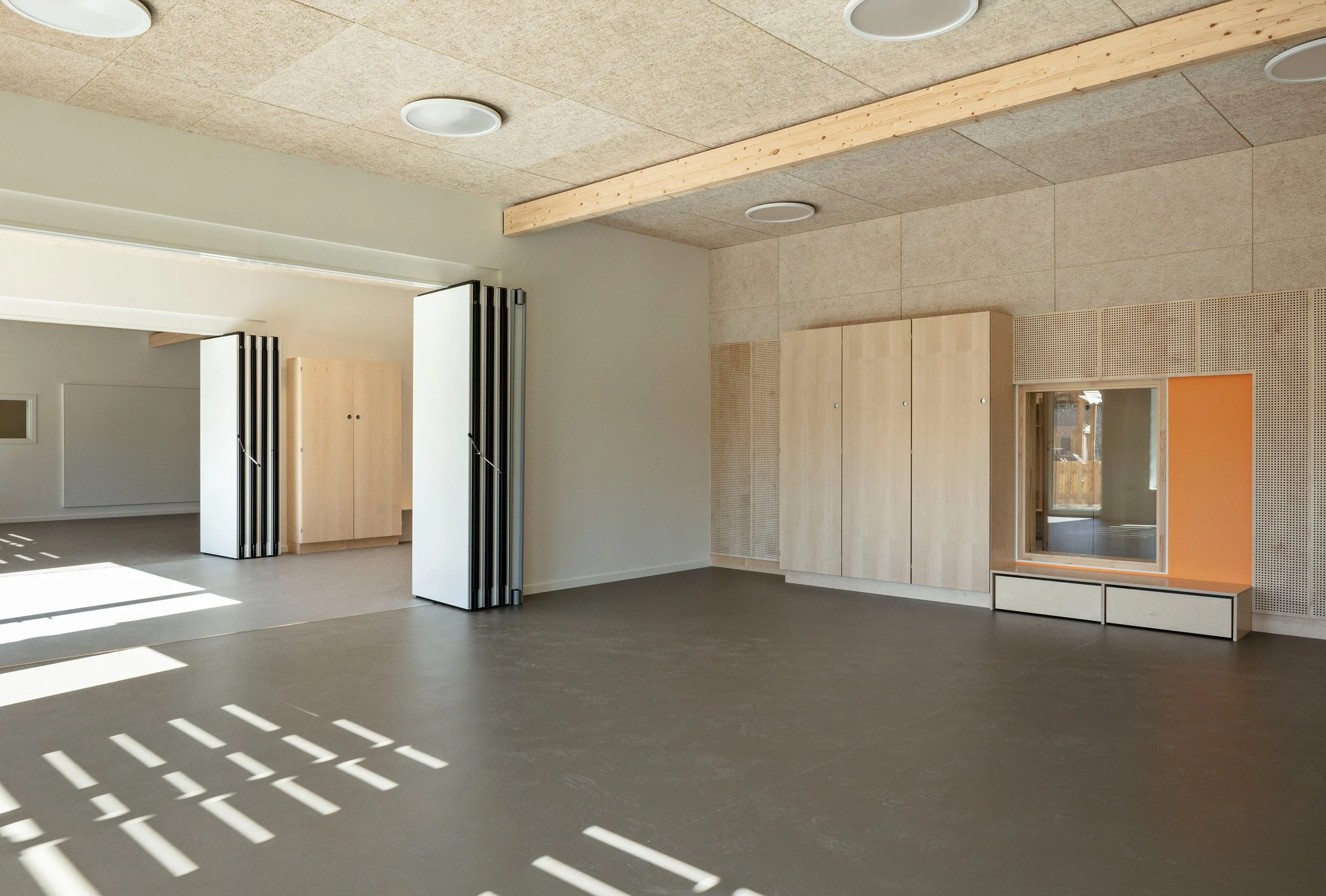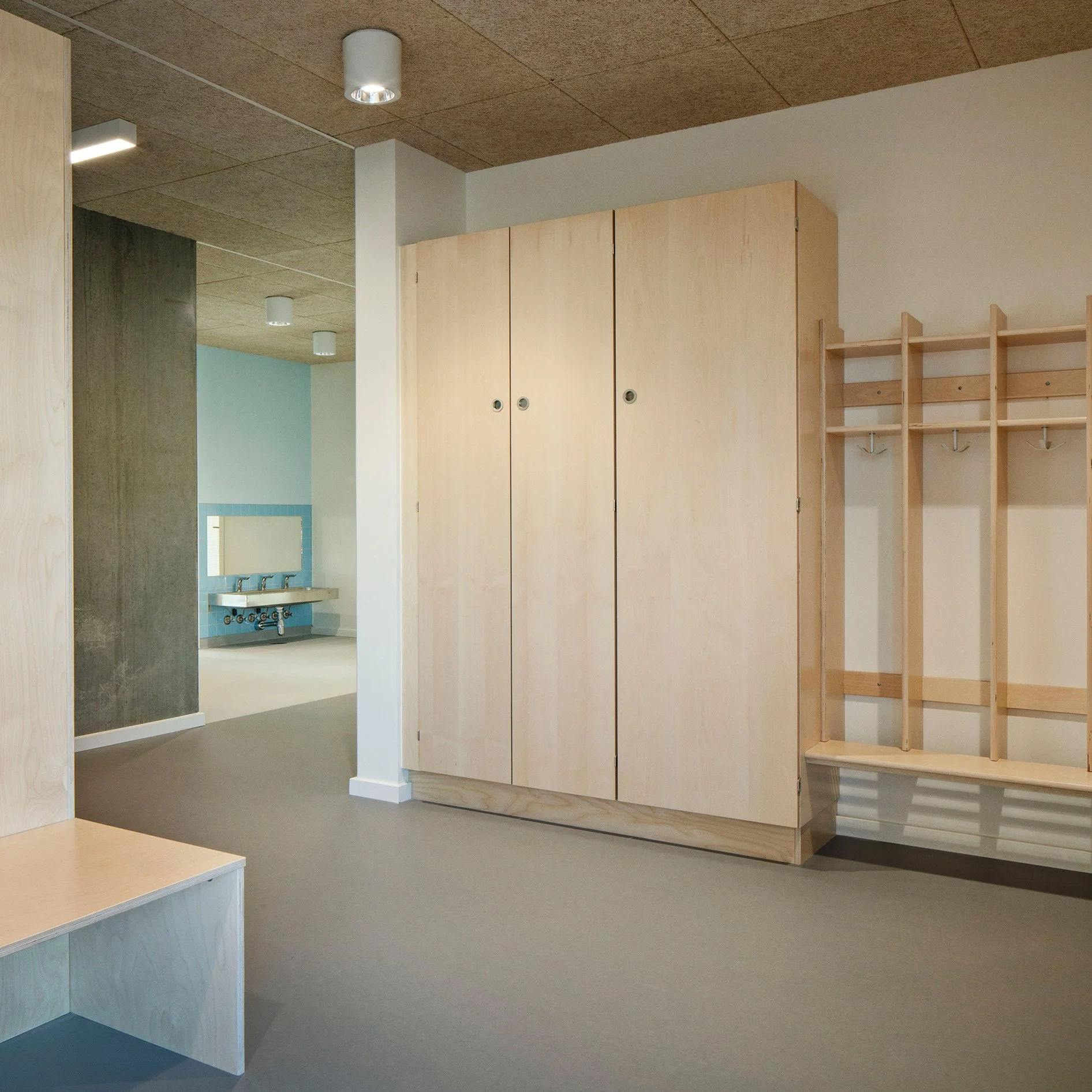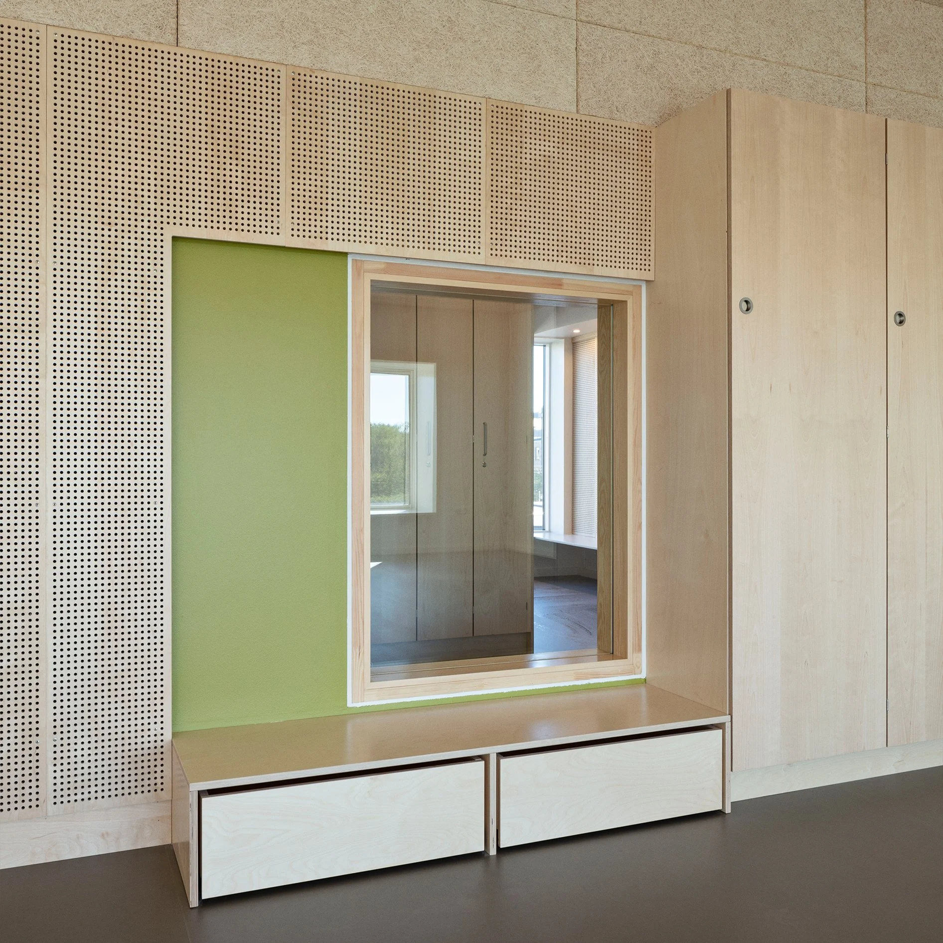 Med tæt og god dialog med brugerne har det fra programmeringsstart været muligt at tænke anderledes i forhold til at optimere arealerne. For eksempel er der i garderobeområderne placeret små lege nicher med kig ud til verden, og grupperum kan via foldevægge lægges sammen med fællesrum, så der kan arbejdes på tværs af grupperne. Med uvurderlige input fra brugerne er der altså etableret fysiske rammer, som præcist understøtter ønskerne for det nye børnehus’ pædagogiske arbejde med og visioner for børns læring og bevægelse.