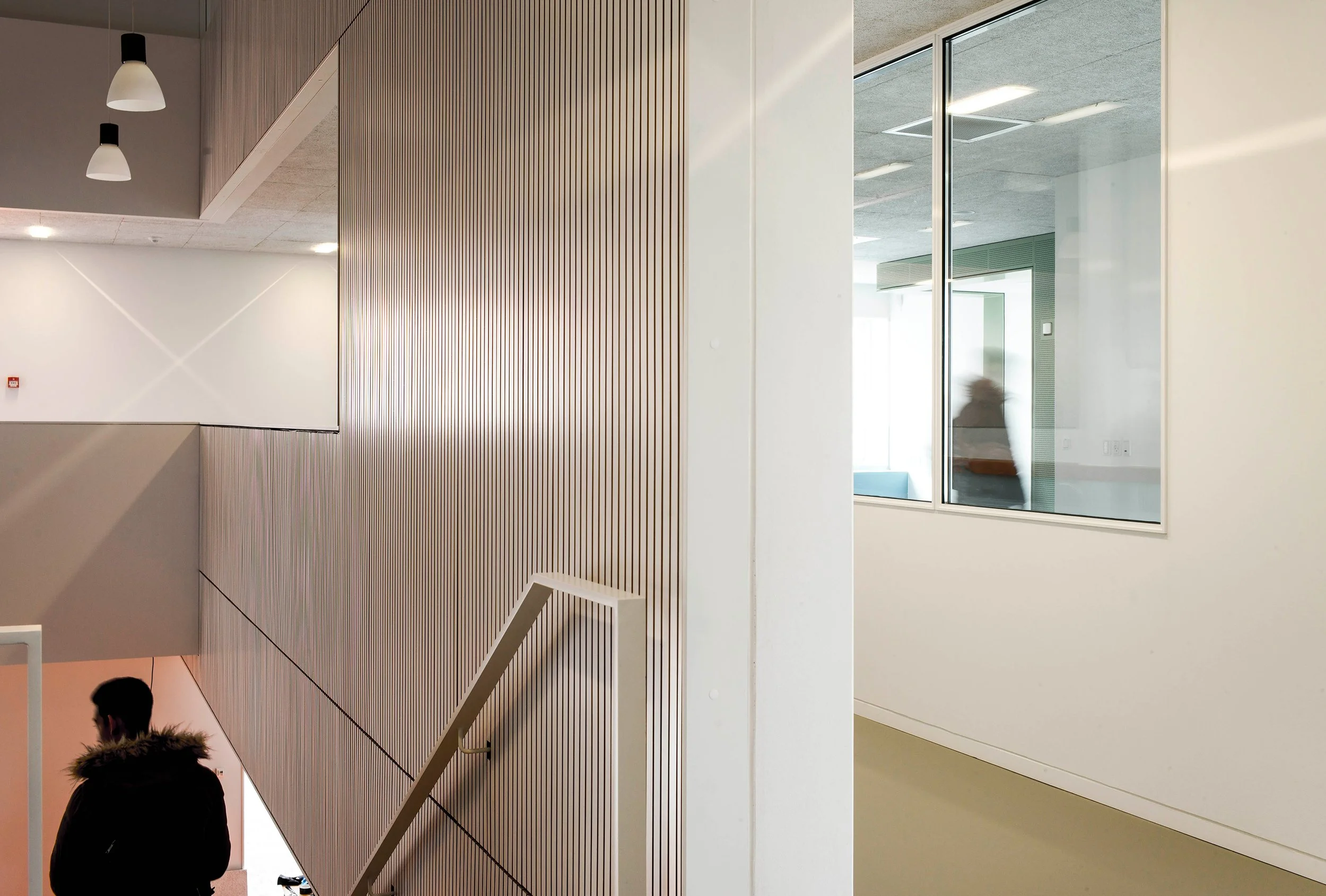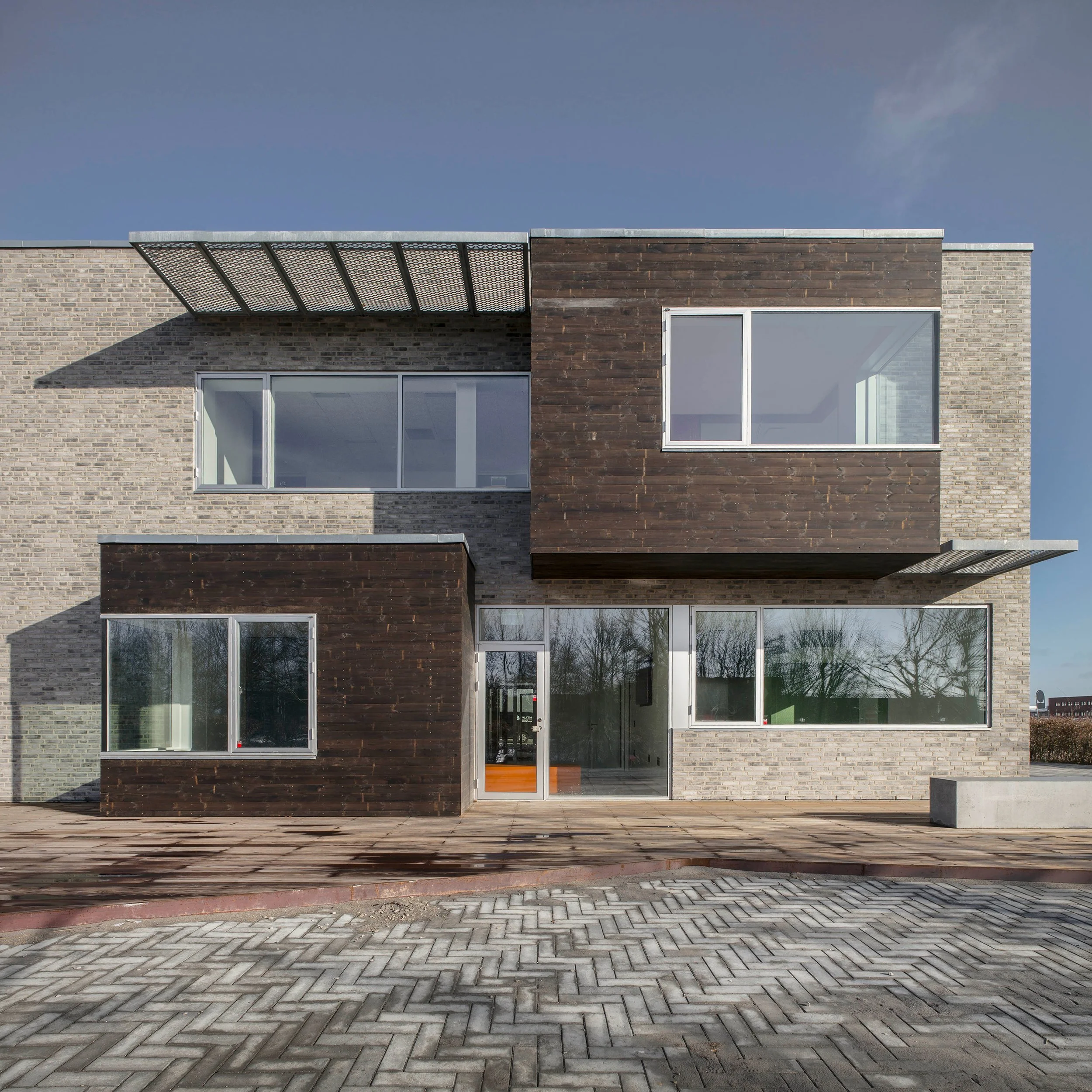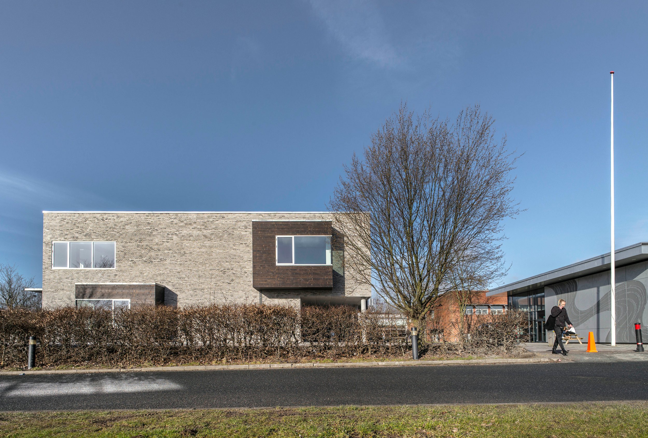 Tilbygningen har en synlig placering, i dialog med skolens musikhus, og står i sammenhæng med de eksisterende skolebygninger, som symbol på et nytænkende og kreativt læringsmiljø. Tilbygningen forbindes med den eksisterende bygning gennem en let glasgang på 1. sal, der samtidig giver let adgang til udearealer og nybygning.