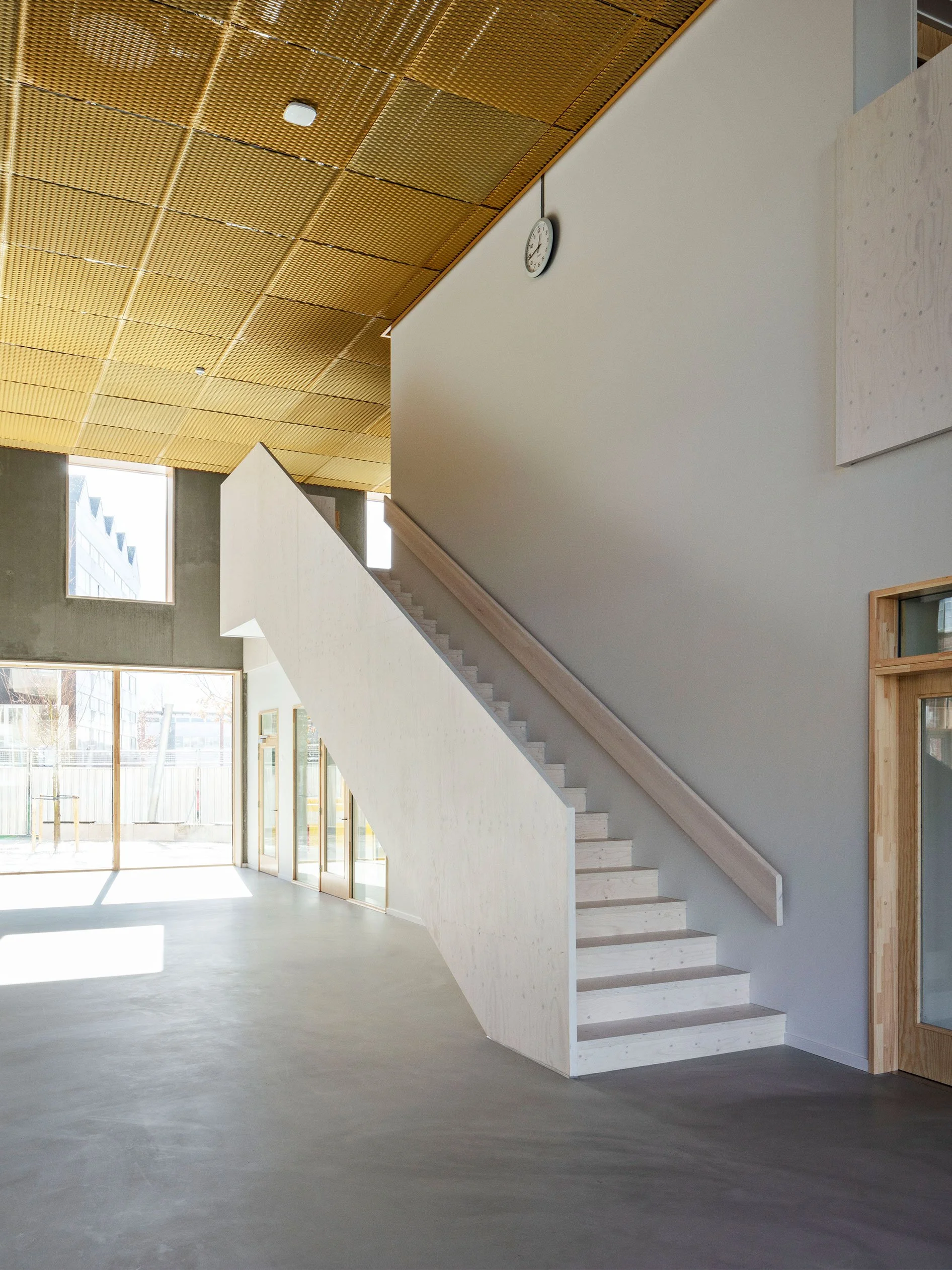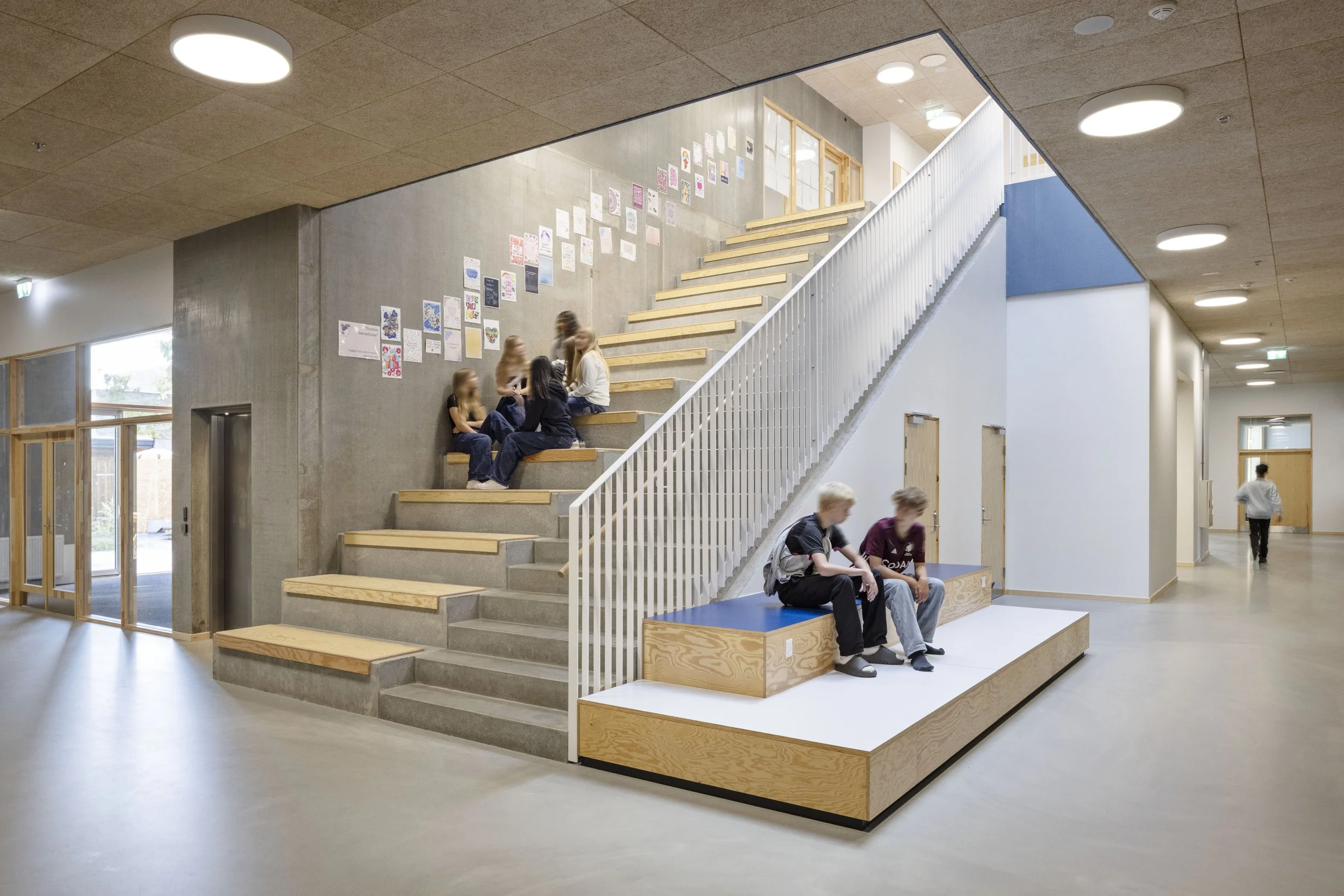 Ønsket er på trods af store voluminer at skabe en både nærværende og tryg skole for børn, forældre og ansatte i dagtimerne. Samtidig med, at det, når skoledagen er ovre, er et sted, der inviterer borgerne i lokalområdet til aktivt fællesskab på tværs af alder og baggrund. Stueetagen er derfor programmeret med offentligt tilgængelige funktioner og faciliteter, der kan anvendes i aftentimerne.