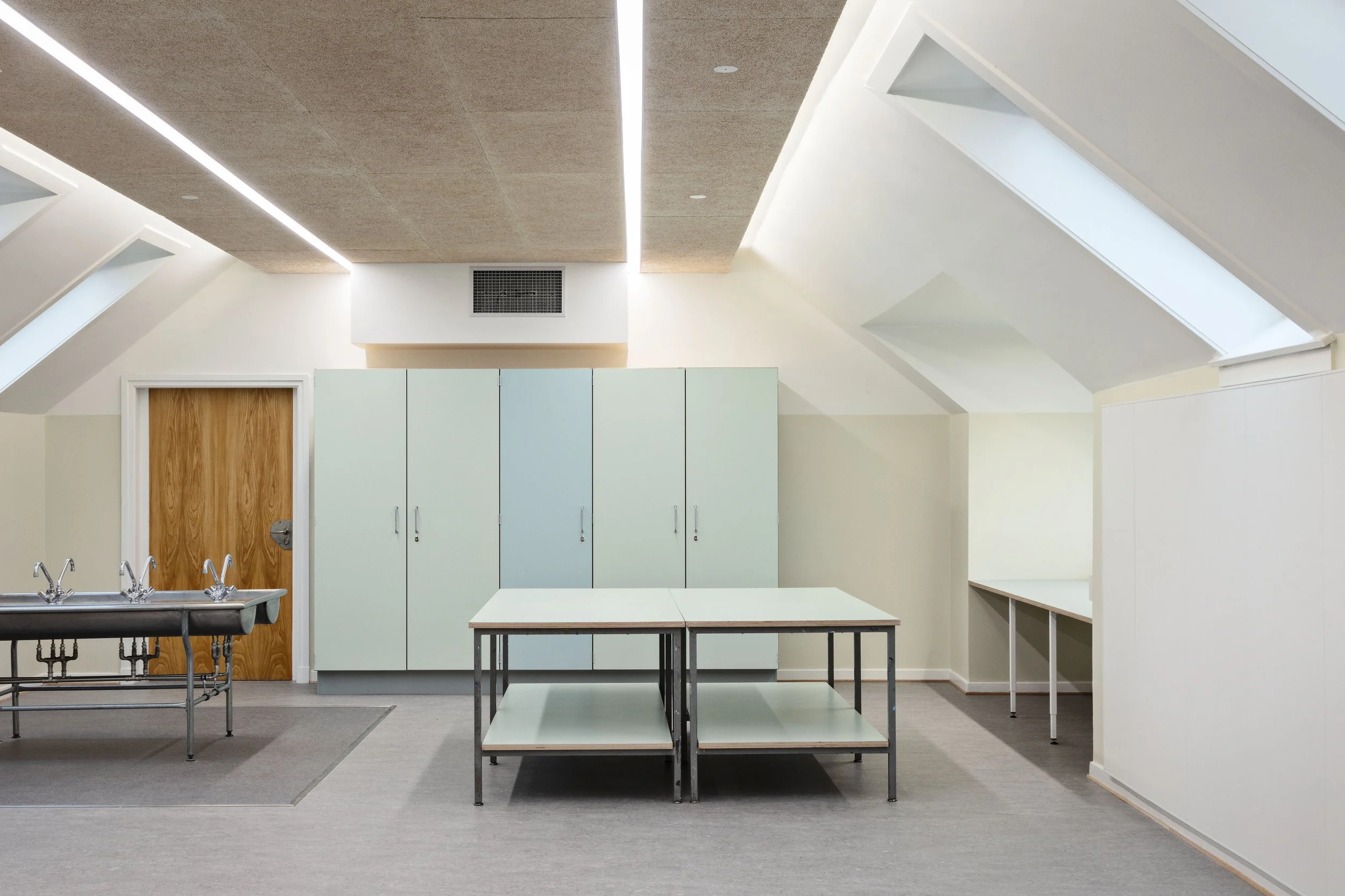 Bygningerne bar ved opgavens begyndelse præg af eksisterende, ikke vedligeholdt installationsføring, et nedslidt brugsvandssystem og flere ventilationsanlæg af ældre dato med deraf følgende dårligt indeklima. Nu er basislokalerne opgraderet, så de opfylder kravene til lys, lyd og ventilation i forbindelse med undervisningsrum samt bygningsreglementets krav som bygherres skærpede krav. Basislokaler er tillige forsynet med mekanisk ventilation, lofter er udført som ventilationslofter i perforeret stål, og der er etableret nye faldstammer, afløb og brugsvandrør, ligesom toiletter er udskiftet til nye rustfrie stålrør.