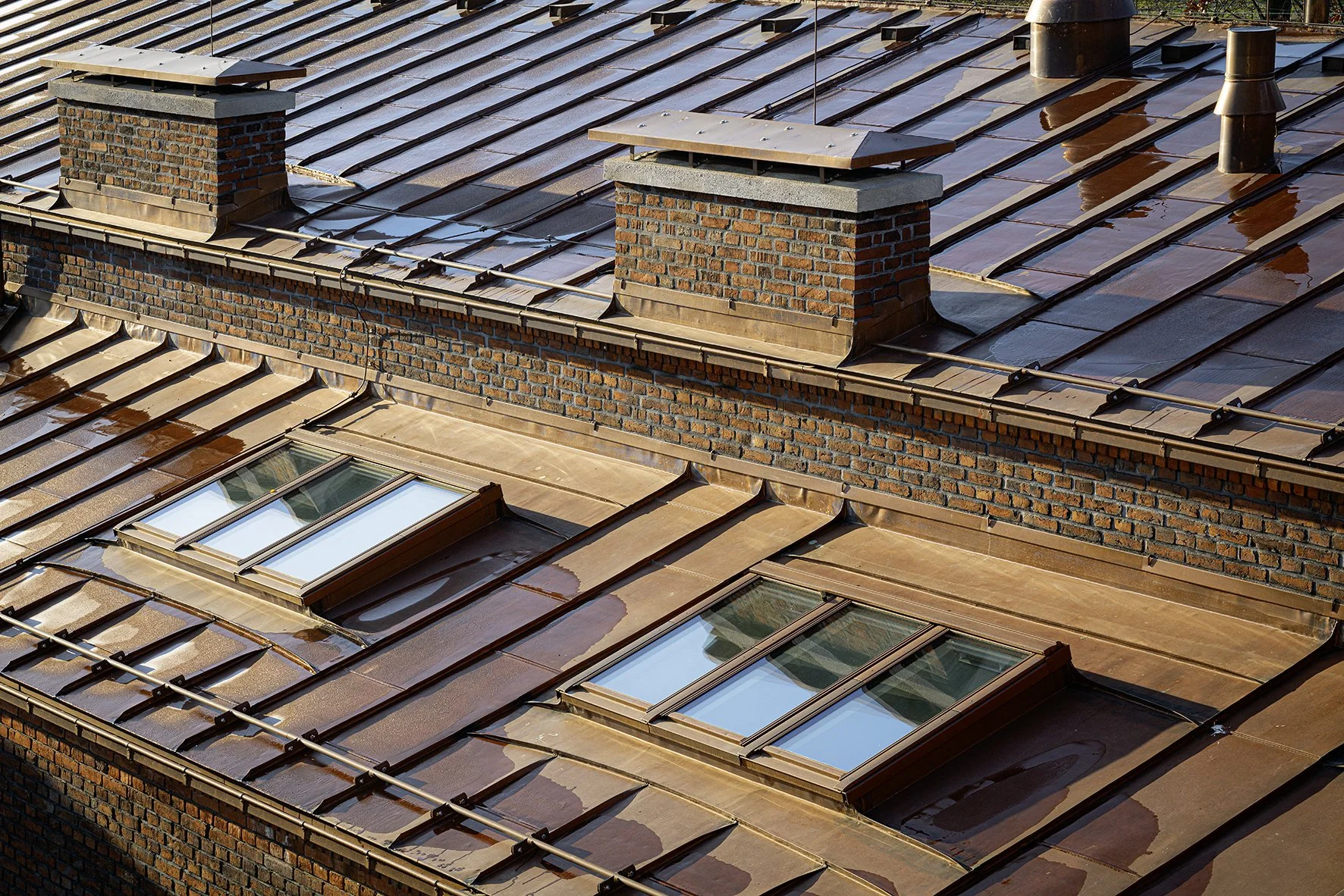 Et centralt greb i projektet har været at bevare og genanvende den eksisterende bygningsmasse. Skolens kobbertage var nedslidte og er udskiftet med nyt kobber udført i høj håndværksmæssig kvalitet. De originale kobberplader er demonteret og genanvendt via Genbyg, hvor materialet har fået nyt liv i andre byggeprojekter – et konkret eksempel på cirkulær ressourceanvendelse i renovering.
