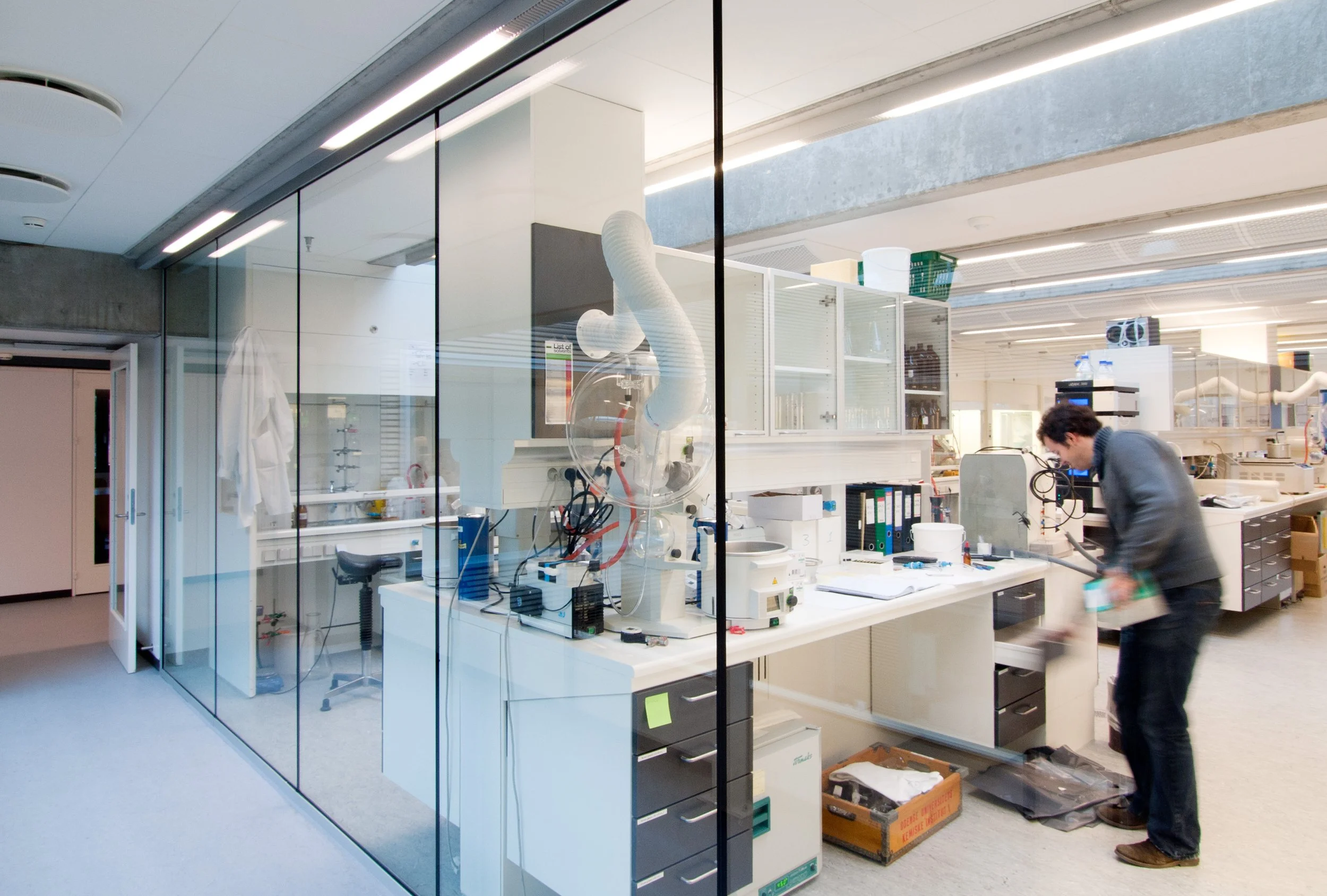 Laboratorierne udføres til overholdelse af GMO-krav i henhold til BYGST-krav til laboratoriemodernisering med nye overflader, nye tekniske installationer samt nyt laboratorieinventar og stinkskabe. Herudover udføres energirenovering af taget, omfattende udskiftning og forøgelse af tagisolering, ny tagdækning samt udskiftning af eksisterende og etablering af ovenlys.